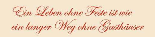 Ein Jubiläum ist immer ein besonderer Anlass. Zeigen Sie dazu die kulturellen Standards der zu feiernden Person, der Gruppe oder des Unternehmens. Egal ob die Feier jahreszyklisch, personen- oder sachbezogen ist, die Ebenen verschachteln sich in den Köpfen der Menschen über ihren Kontext. Denn wir reden über eine Erinnerungsfeier bei der Rückkehr eines besonderen Zeitpunkts. Die Unternehmenskultur wird dabei auch aus ihrer Festkultur ableitbar. Jede Unternehmung, somit jedes Fest, ist Teilmenge der Gesamtkultur. Ein Festtag ist keine Einbahnstraße für das Wohl eines einzelnen. Feste funktionieren rückbezüglich. Sie heben die Teilnehmer empor, aus dem Alltag heraus, sie stiften Gemeinschaft und beinhalten hohe Emotionalität – Freude, Begeisterung und Anteilnahme – die man positiv nutzen kann. Daher nichts dem Zufall überlassen. | ![]() |